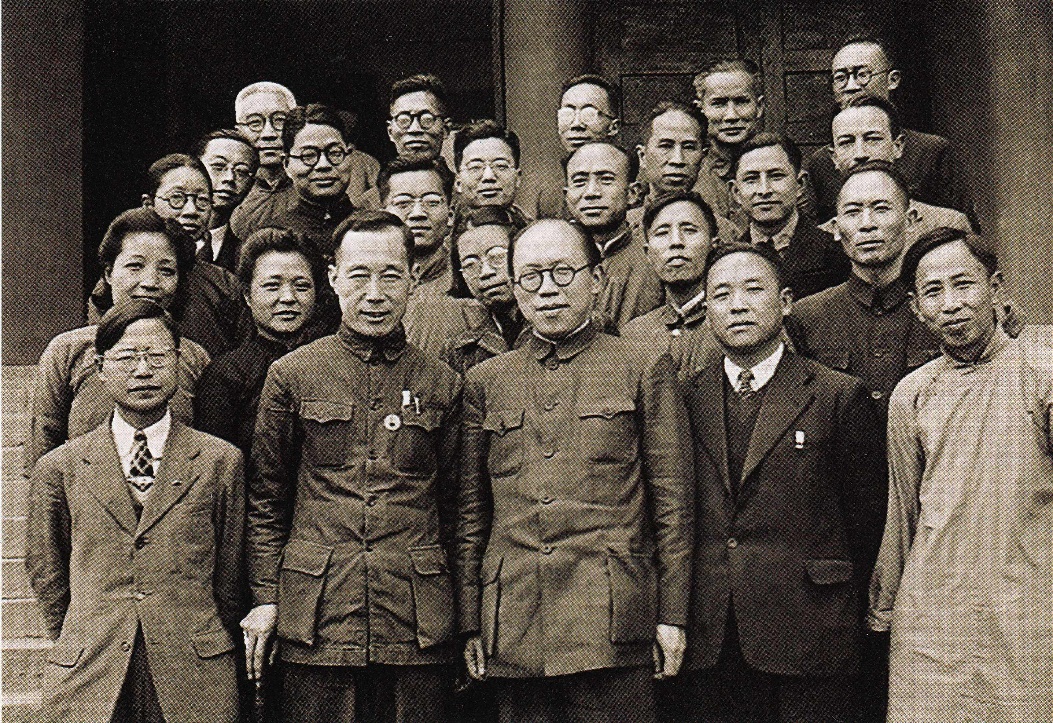 湘雅教职员在重庆陆军医院合影,前排左起一刘秉阳、二吴执中、三张孝骞、四王肇勋、五张德威