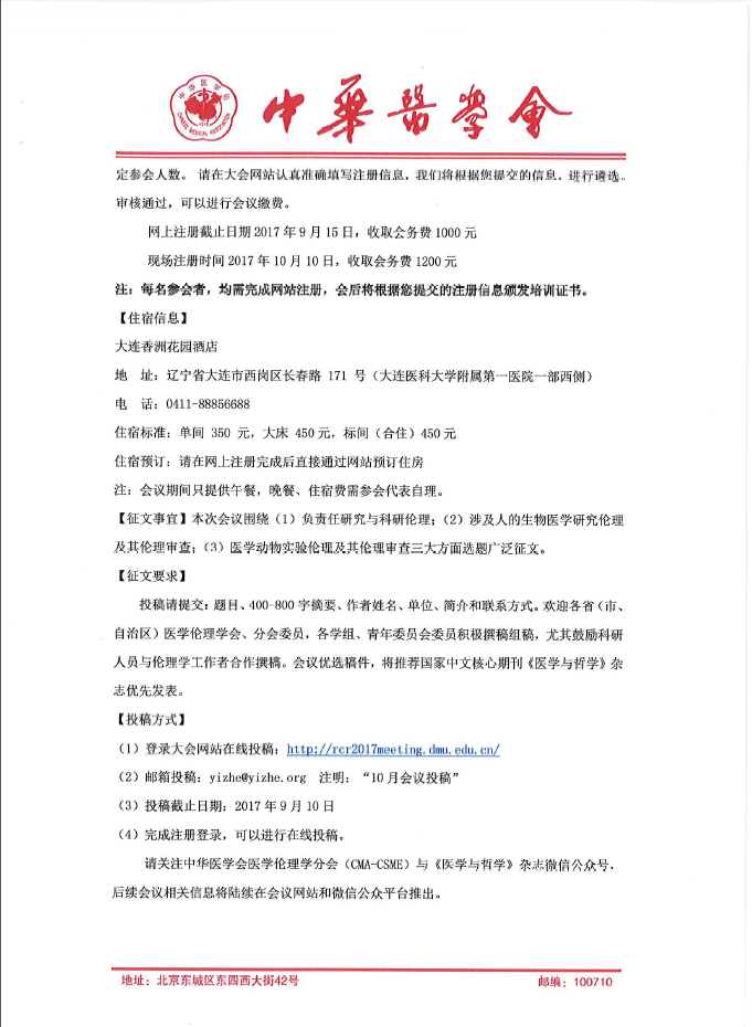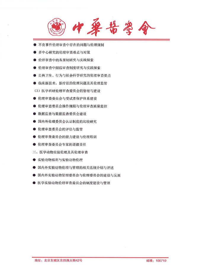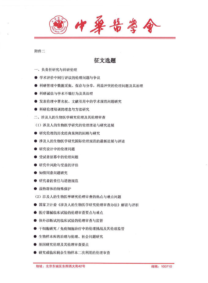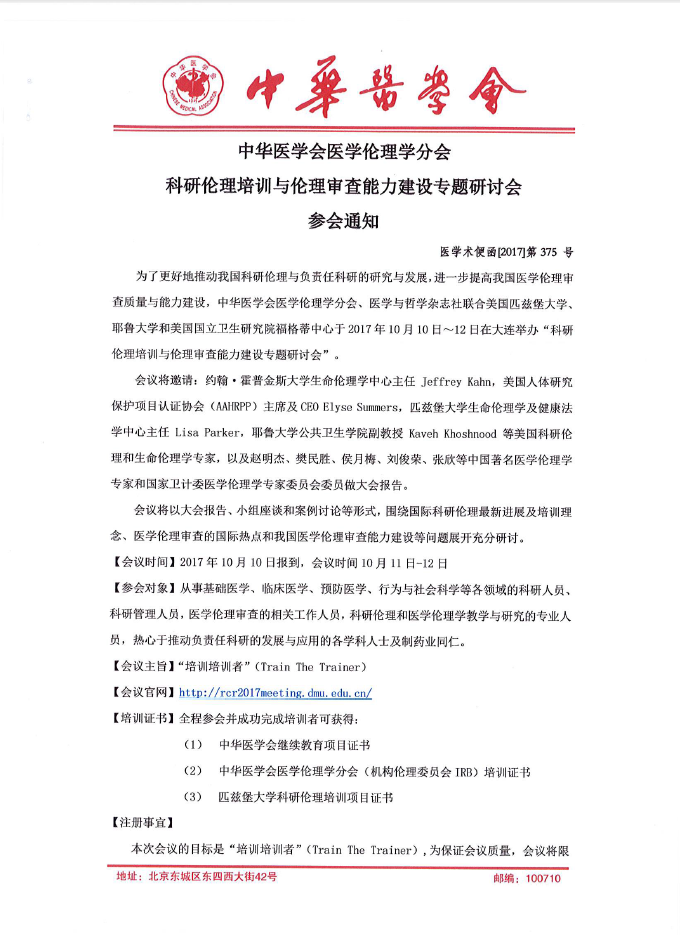 中华医学会医学伦理学分会科研伦理培训与伦理审查能力建设专题研讨会参会通知