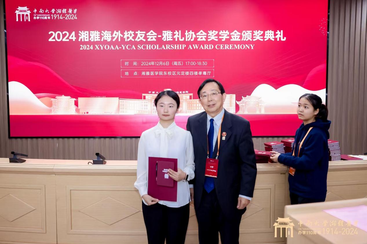 During the ceremony, Wang Liang, Board Chair of the Xiangya Overseas Alumni Association, presented certificates to the 63 award-winning students of the 2024 academic year.