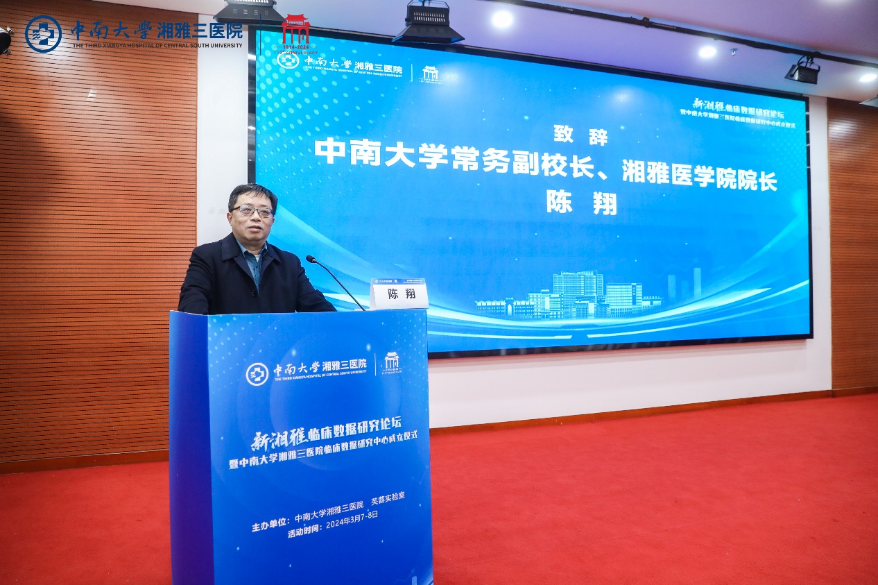 Chen Xiang, Executive Vice President of Central South University, Dean of Xiangya School of Medicine, and Director of the Furong Laboratory, attended the forum. Prior to the event, a ceremony was held to establish the Clinical Data Research Center of Xiangya Third Hospital, Central South University. Chen remarked that in the digital age, data has become one of the most critical factors of production, driving the development of strategic emerging industries and future industries. Developing data science has become a national strategy. With the advent of the big data era, clinical data research has become an important direction in the field of medicine. This forum will serve as an important platform for Xiangya to explore data science and promote clinical research. It will play a crucial role in strengthening collaboration with domestic and international universities, research institutions, and enterprises, attracting and cultivating high-level research-oriented talents, and promoting innovation in clinical data research.