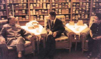 1919年“五四“运动爆发后,毛泽东与湘雅学生张维、李振翩等领导革命学生运动,并亲自参与主编《新湖南》校刊。50年以后毛泽东在北京接见了美籍华人科学家、社会活动家李振翩,李振翩校友又参与架设中美友好和建交的金桥。图为1973年8月2日,毛泽东在自己的书房里与李振翩亲切交谈